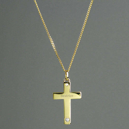 9ct Gold Cross with Sterling Silver Heart & CZ Necklace