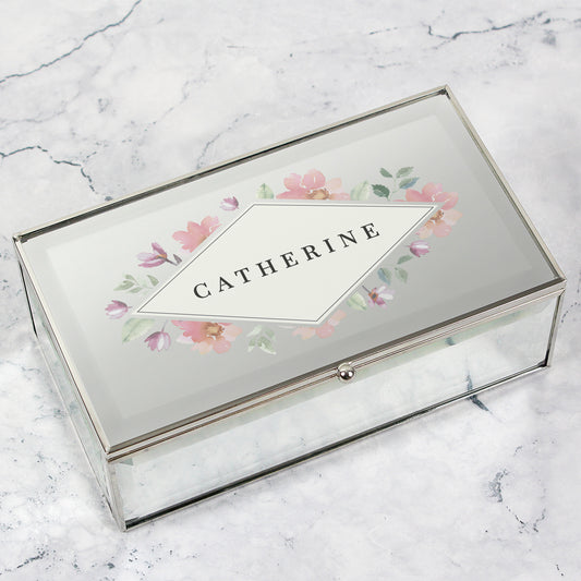 Floral Watercolour Mirrored Jewellery Box