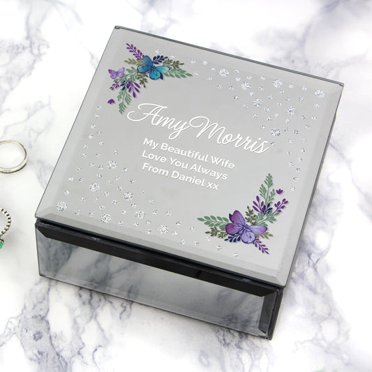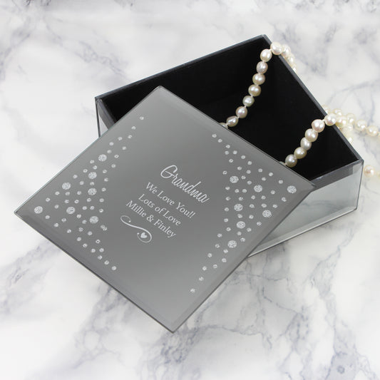 Any Message Swirls & Hearts Diamante Glass Trinket Box