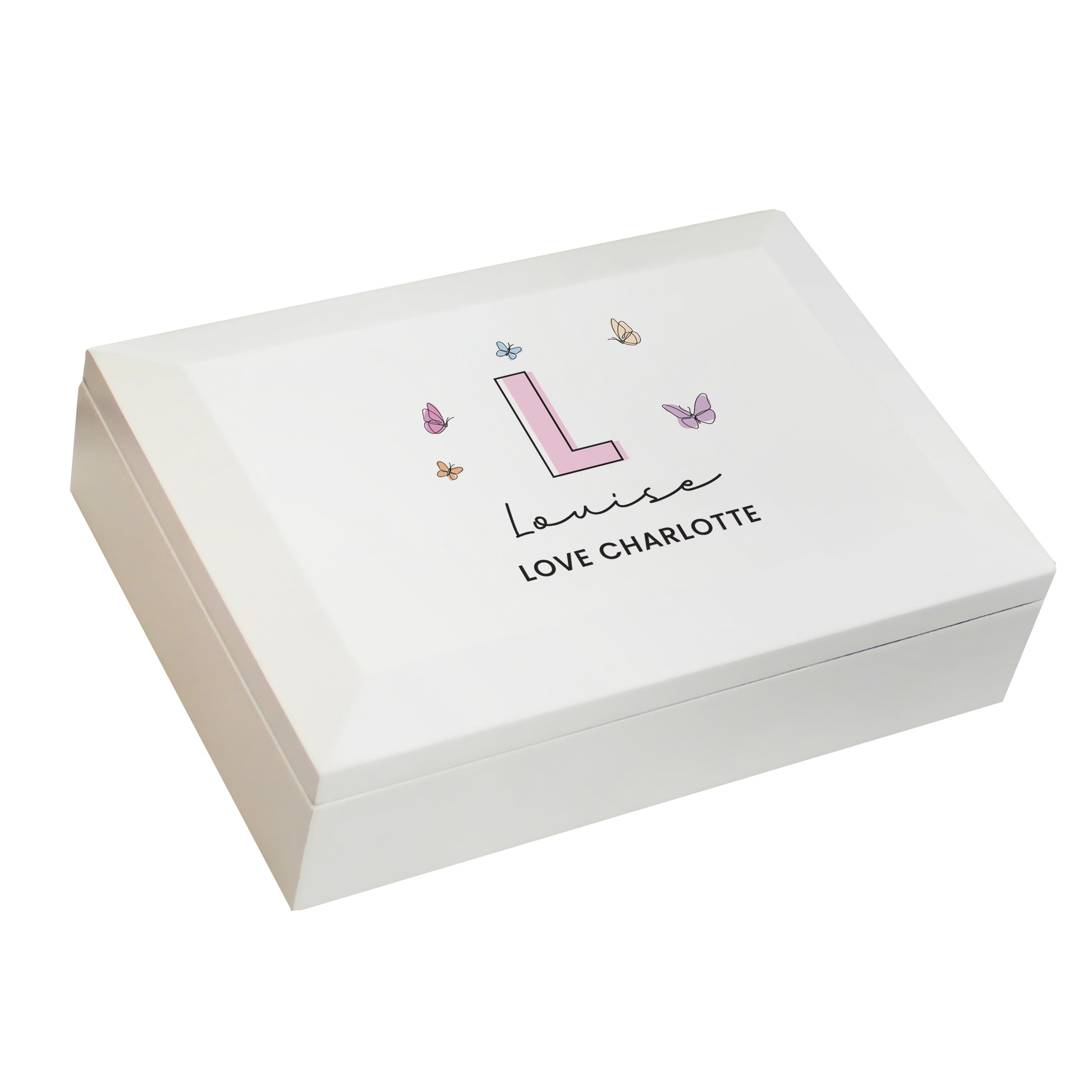 Girls Personalised Butterfly Initial Wooden Jewellery Box