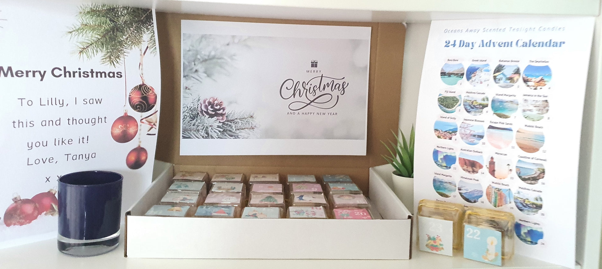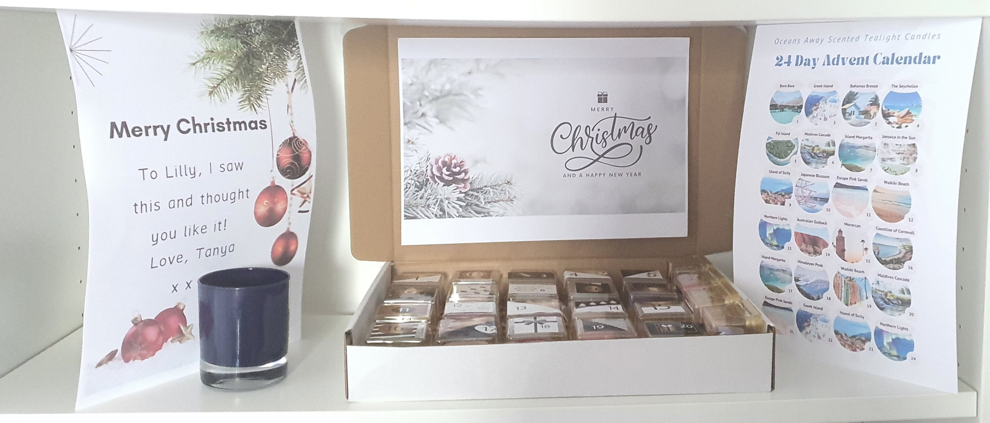 24-Day Advent Calendar Scented Candles Oceans Away Collection Scented Tea Lights - Long Lasting 6 hour burn.